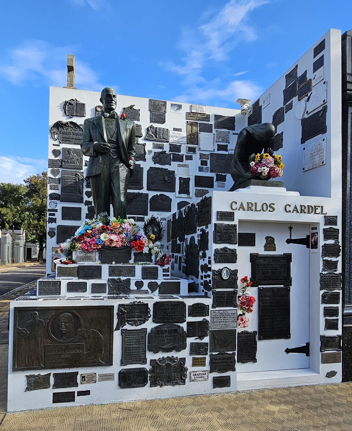 Em La Chacarita - de ingresso totalmente livre - o nome do falecido mais famoso é Carlos Gardel. E ali, ao pé de seu túmulo, descobrimos que, além de ser o nome mais conhecido do tango argentino, ele se transformou num santo milagreiro não canonizado. Há muitas placas agradecendo pelos favores alcançados. É bonito de ver.