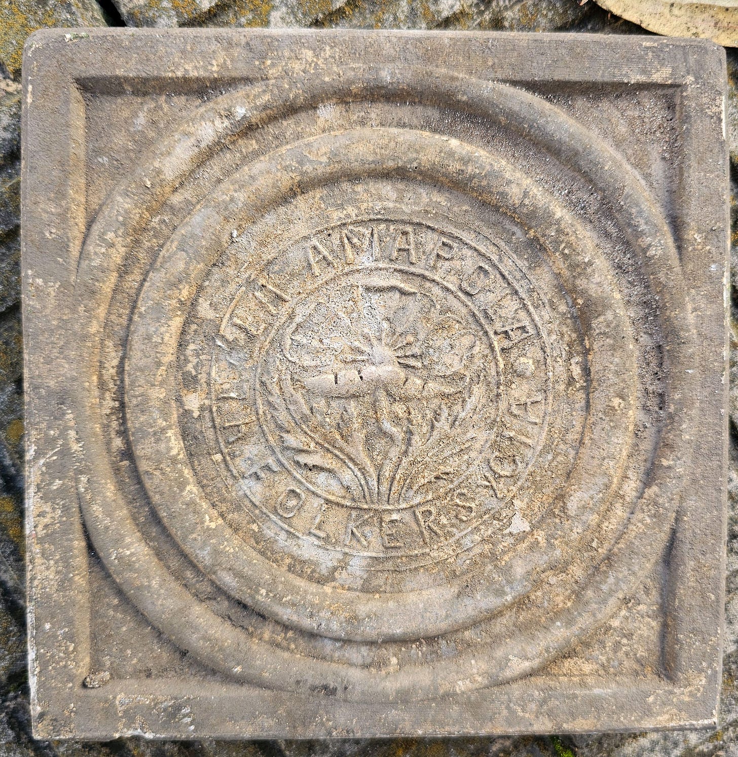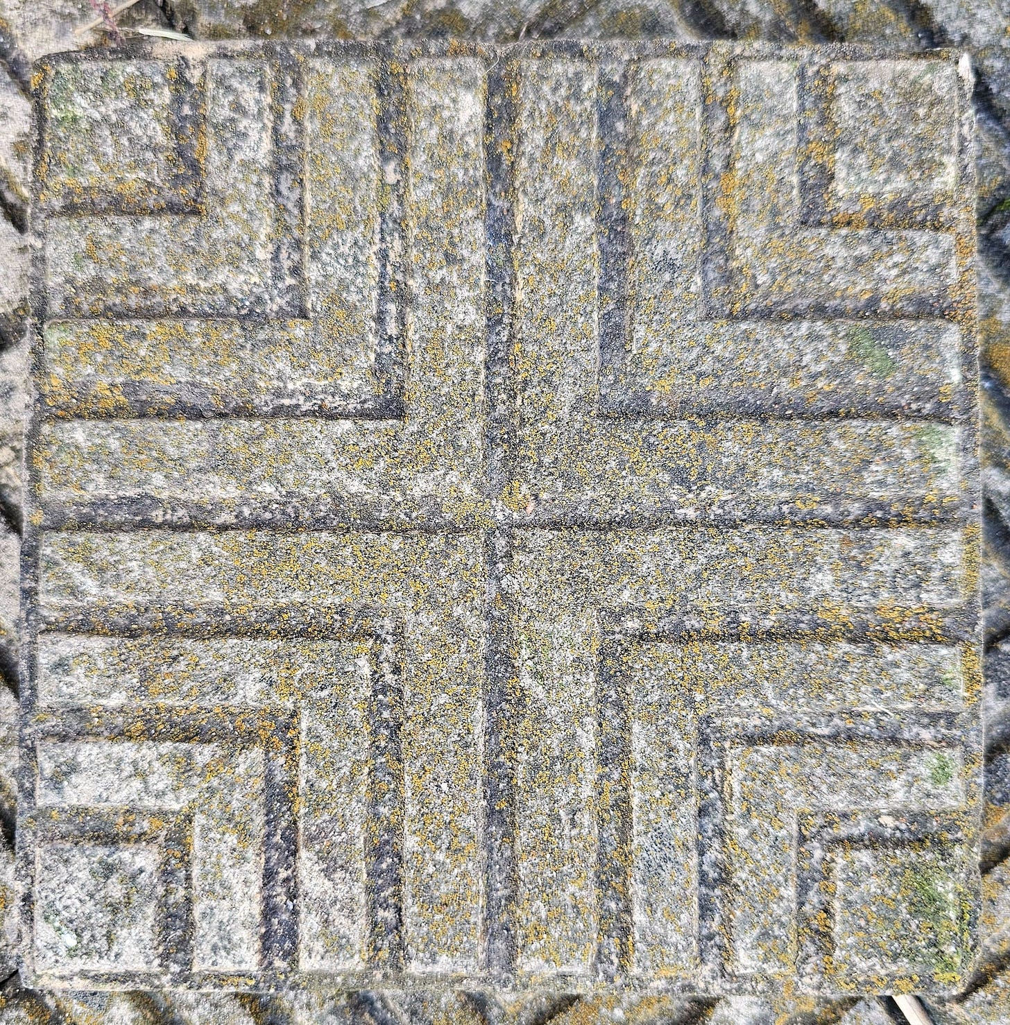 Já a caminho da saída, vimos que alguns ladrilhos estavam soltos e revirados. A face voltada para cima era assim: